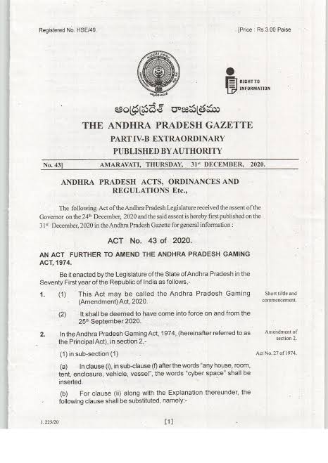 Andhra Pradesh Gaming Amendment Act of Law, 2020: